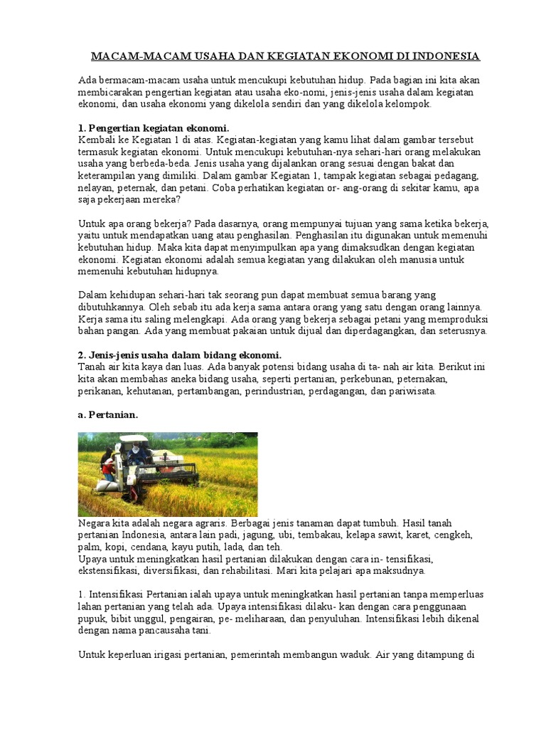 Tugas Jenis Jenis Usaha Dan Kegiatan Ekonomi Di Indonesia 3 Pdf